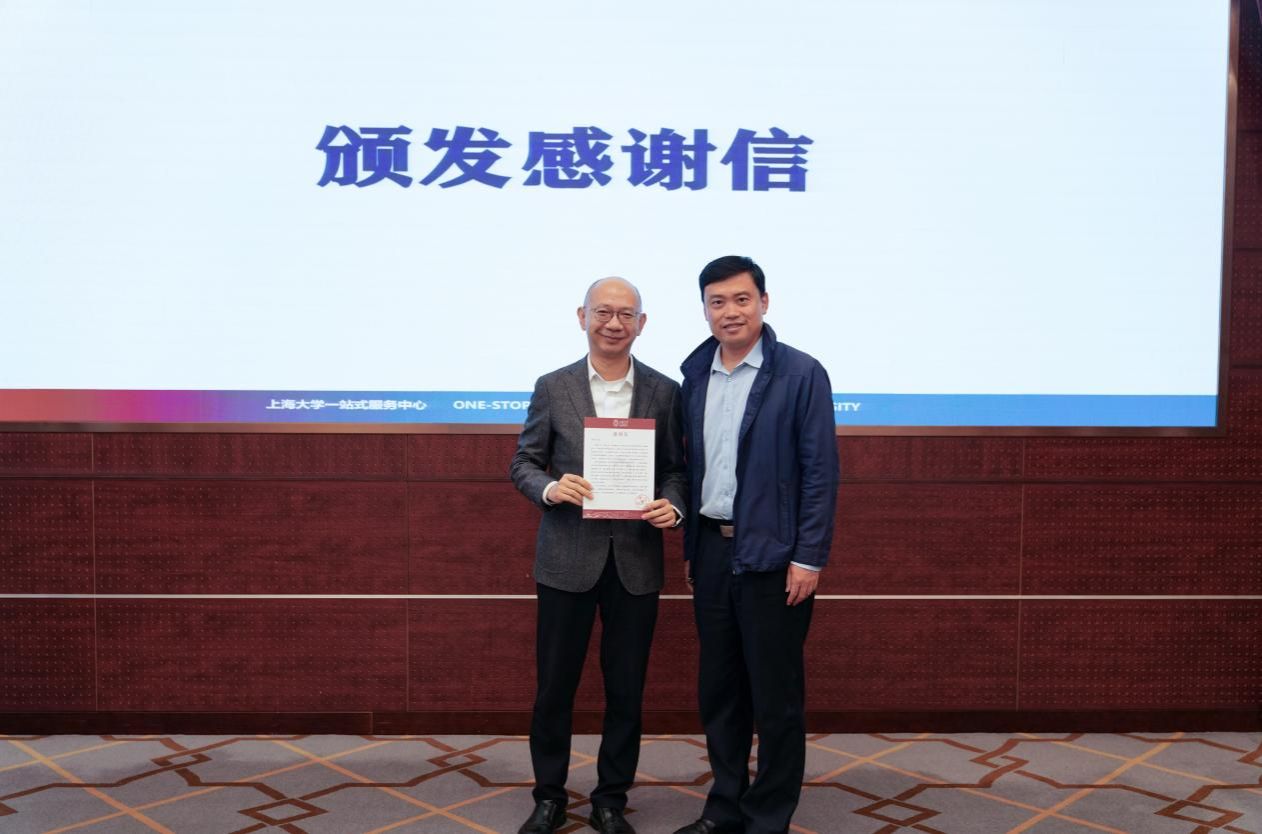 会议表彰环节,胡大伟为14个入驻部门颁发感谢信。一站式服务改革实践历经五载,众多部门倾力其中,在一线服务、支撑保障等方面作出了重要贡献。
