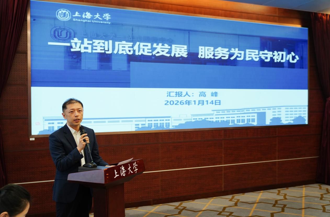 一站式服务中心主任高峰作了题为“一站到底促发展,服务为民守初心”的五周年工作汇报。他从运行情况、成果经验、发展方向三个方面系统梳理了中心的发展历程。五年来,中心累计为师生办理业务超20万件,日均接待300余人次。面向下个五年,中心将恪守服务初心,着力重塑业务标准,推动数字全面赋能,实现主动治理升级。