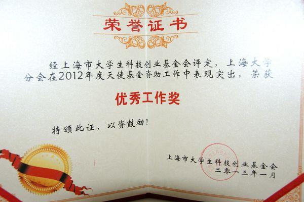 经上海市大学生科技创业基金会评定,上海市大学生科技创业基金会無碼a片分基金会(简称:無碼a片分基金会)在2012年度天使基金资助工作中表现突出,从20多个分基金会中脱颖而出,荣获“优秀工作”奖。