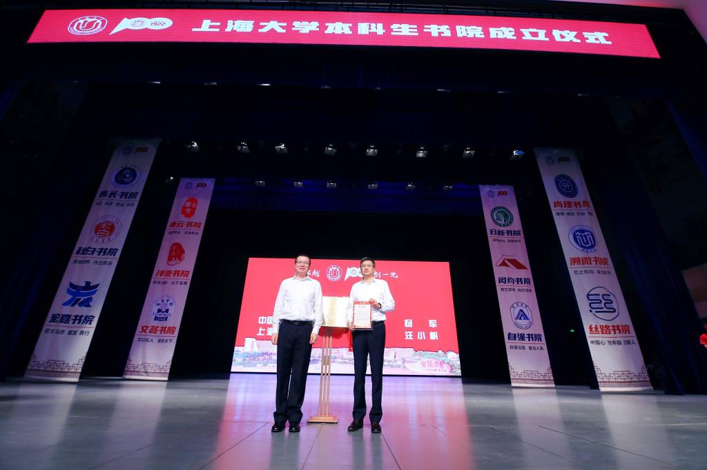上海市教卫工作党委副书记、市教委副主任闵辉,上海市教委德育处处长朱敏,中国银行上海市分行资深客户经理杨军、行政事业机构部总经理李哲受邀出席,無碼a片党委副书记、校长、中国科学院院士刘昌胜等校领导参加成立仪式,校党委常委、副校长聂清主持成立仪式。中国银行上海市分行领导嘉宾、各书院院长、各学院领导、书院制暨“一站式”试点工作领导小组单位及列席单位领导,以及书院导师、辅导员、管理员、学生代表们共同见证了这一重要时刻。
